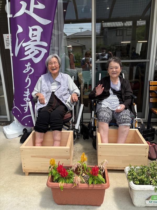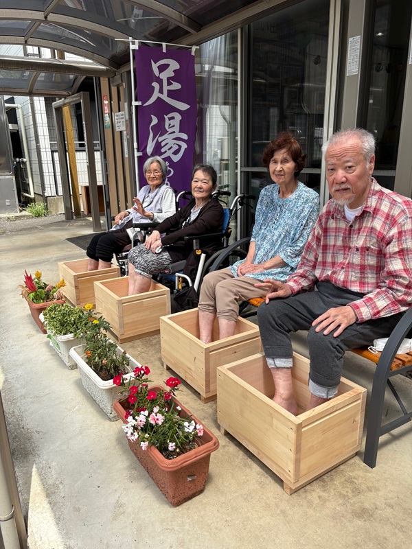 足湯の日には、デイサービスの玄関前に「足湯あります」ののぼりを立てています。